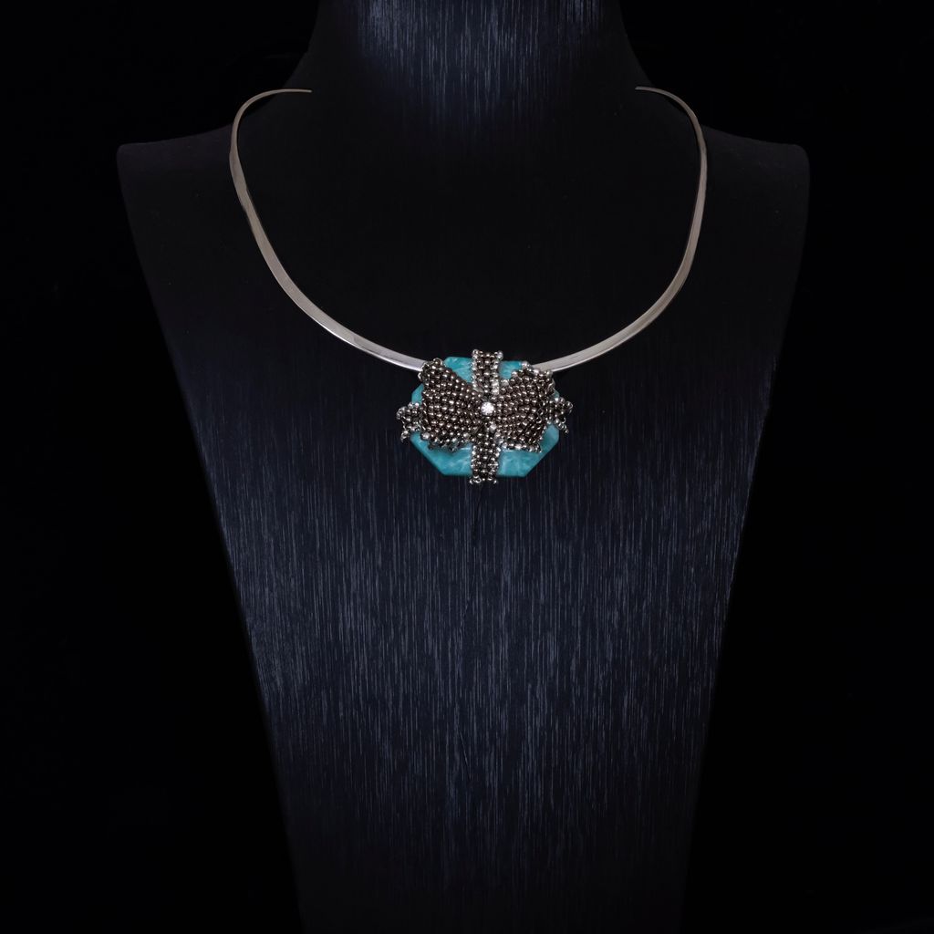 材質:銀、雅馬遜石、編織珠